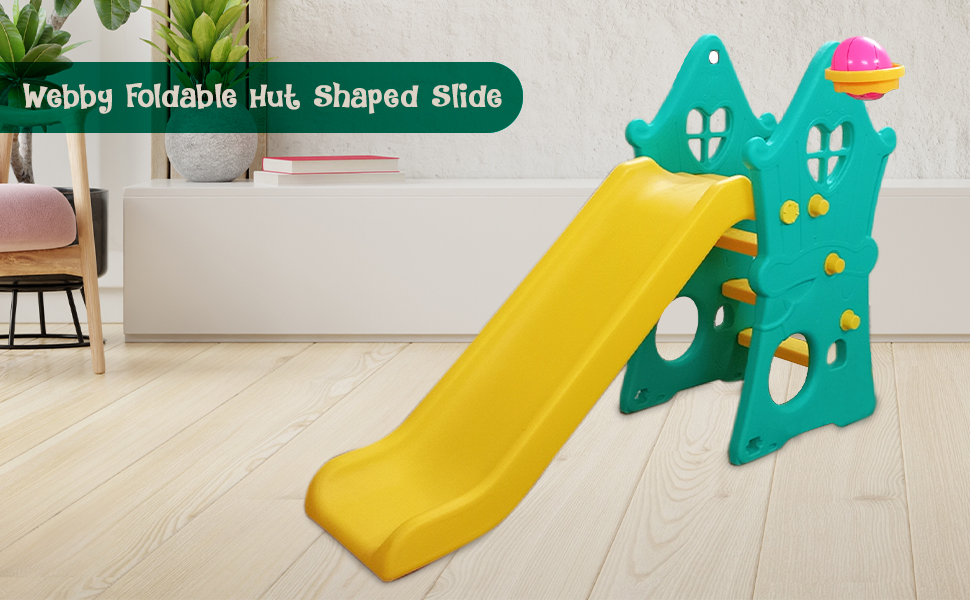 Perfect beginner's slide, especially for younger kids. When babies are sliding, it will promote their tactile sensing, practice their coordination ability, improve their balanced capacity. It is a valuable gift to your babies as their first slide.. Safe and durable - made of durable and non-toxic PE material which is secure for your babies to slide. With large capacity of upto 30 kg, it lasts long to accompany your babies to grow older. Multi-color design better attracts your babies to play it initiatively. Smooth slide - gentle slope and easy-to-climb steps offer your babies a smooth slide. The whole slider is connected smoothly without edges for babies tender skin. Easy to fold - fold it down without tools for compact storage. Make it lean on walls, stand, etc. It will keep stable. Webby slider provides a never ending adventure for your little ones. They use it either inside or outside. Climbing ladder provides a safe and easy challenge for children