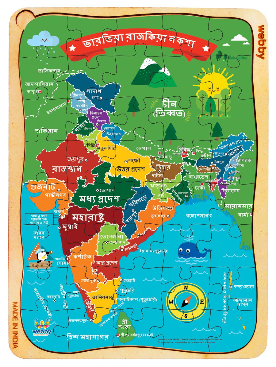 • Wooden Puzzle: The Webby India Map in Bengali Wooden Jigsaw Puzzle features 40 pieces that fit together smoothly. All these pieces are made up of wood.