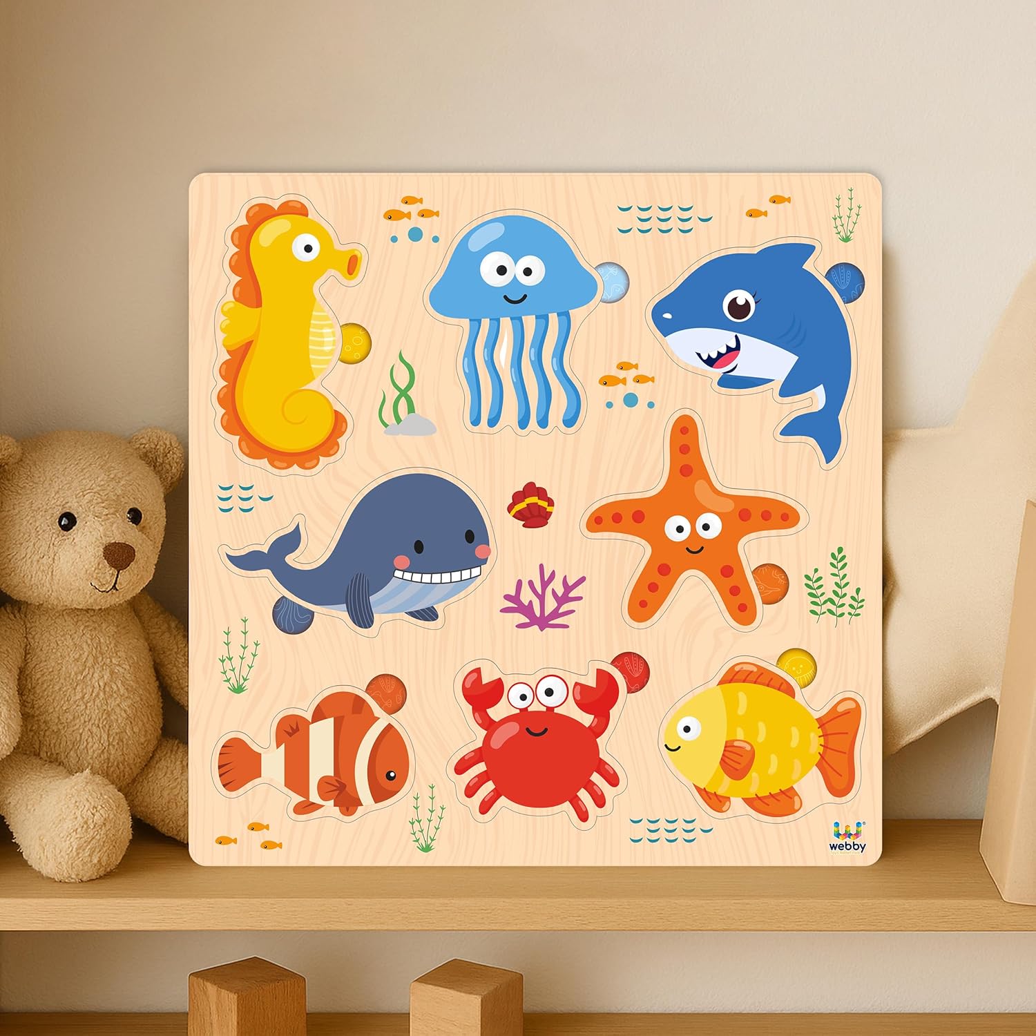 - EDUCATIONAL SET: Combo pack of 3 wooden puzzles featuring sea animals, shapes, and transport vehicles for comprehensive learning and development
